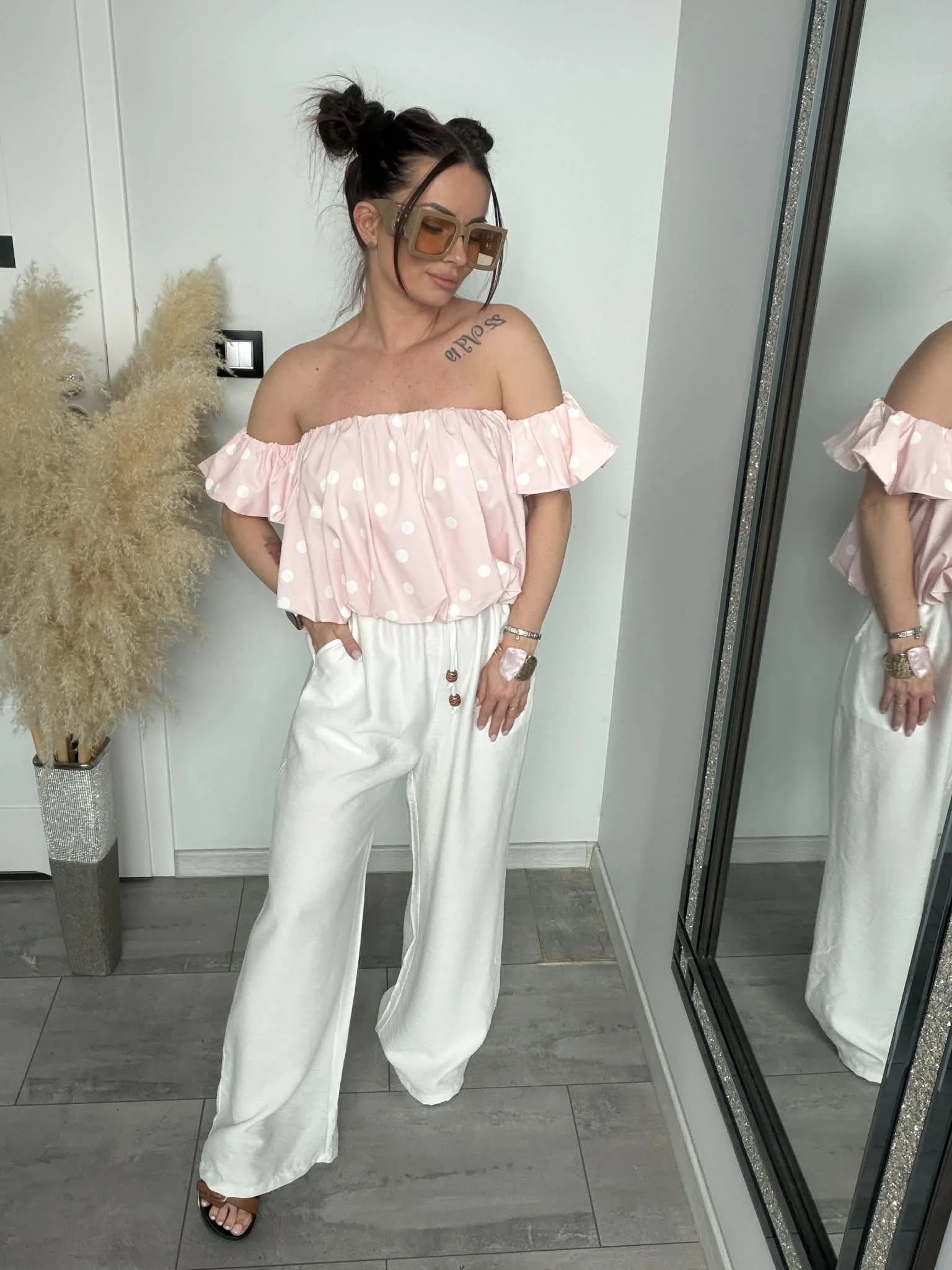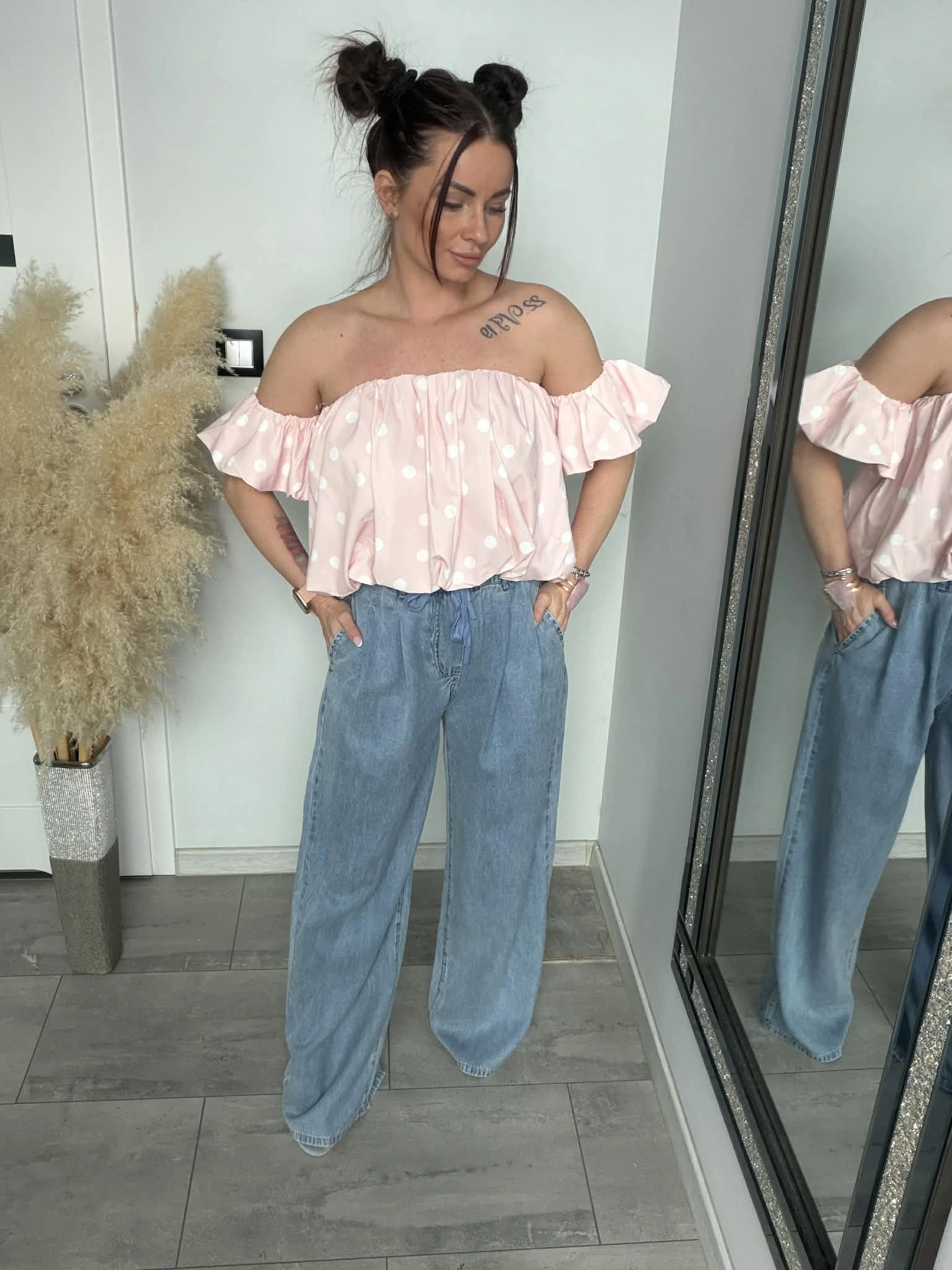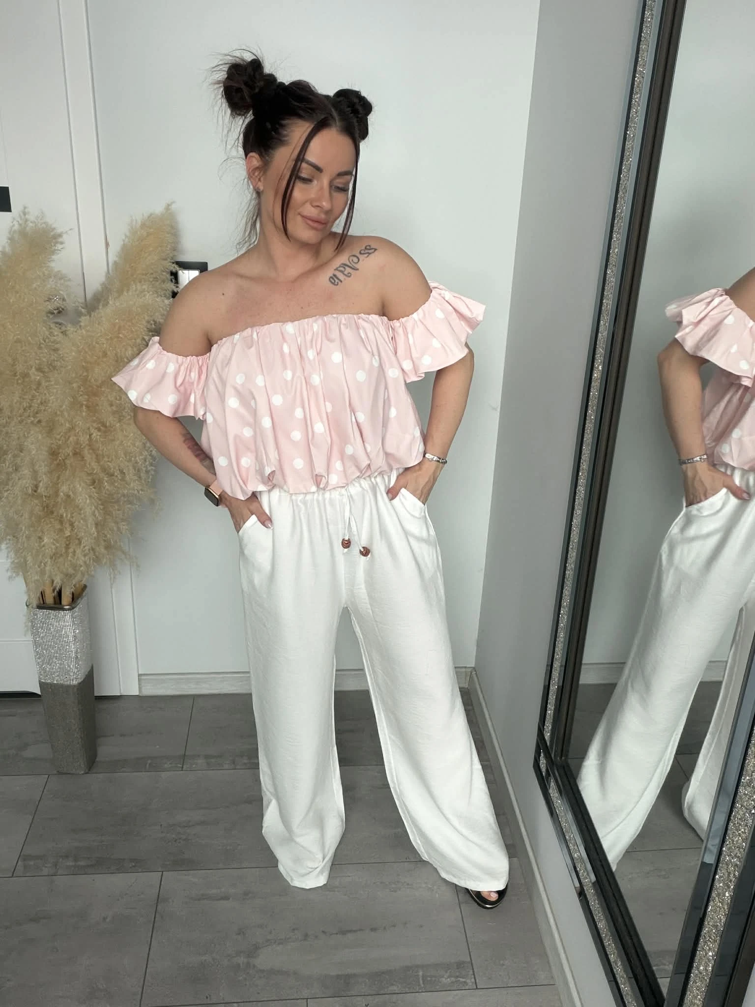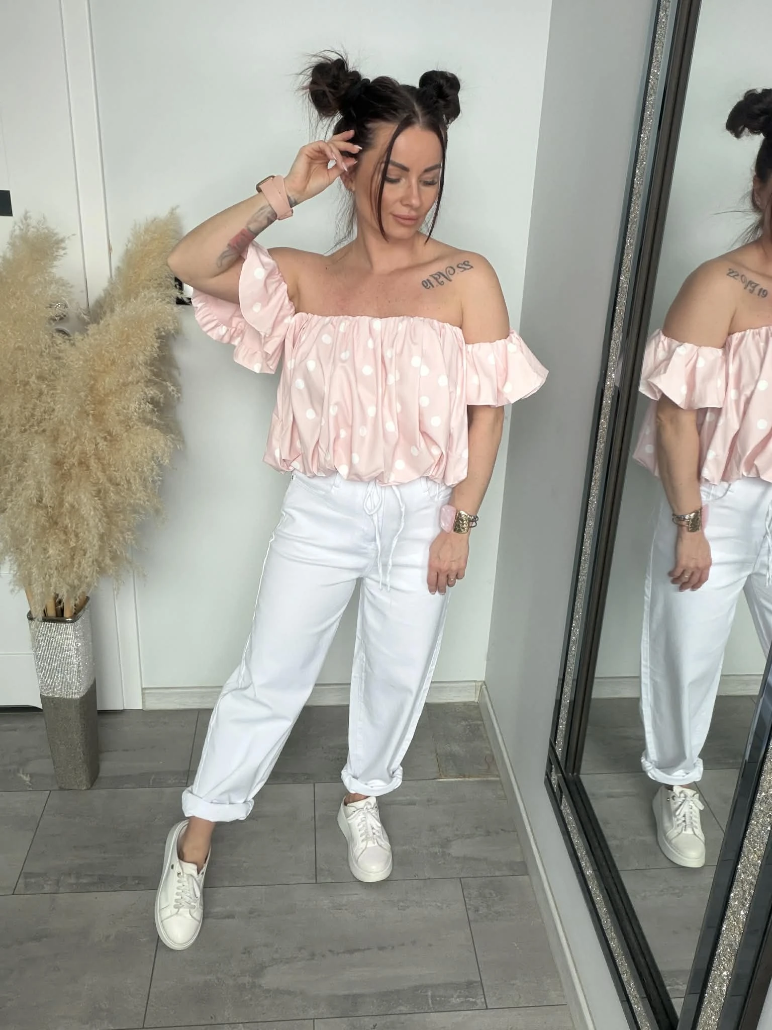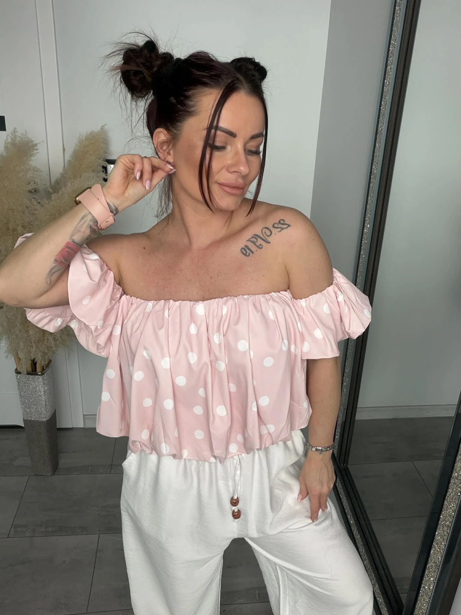 Bluzka hiszpanka MARLEN w groszki pudrowy róż