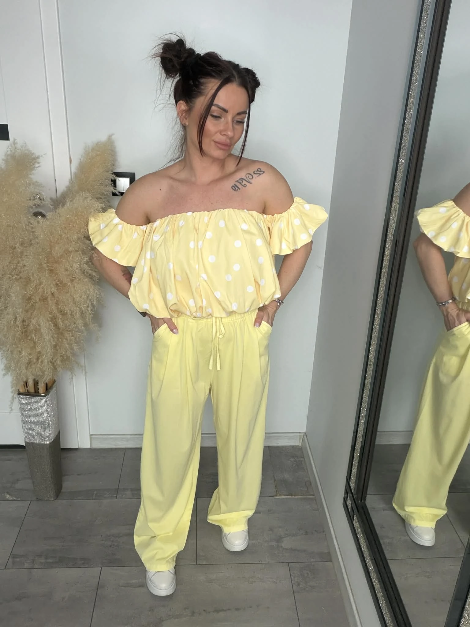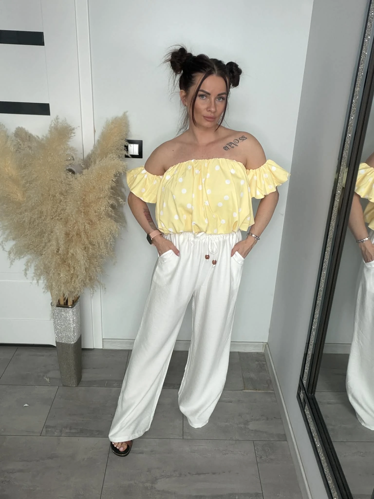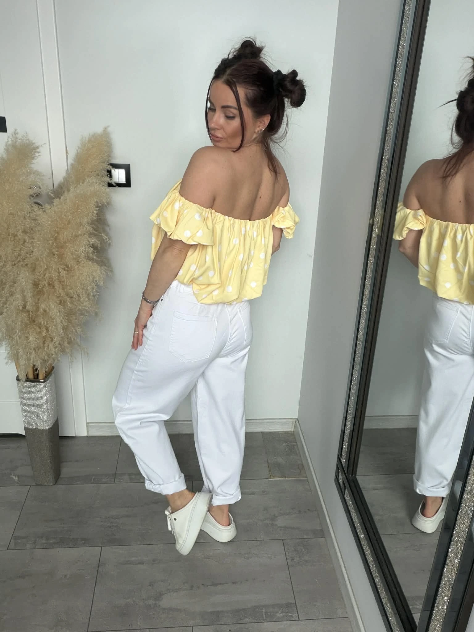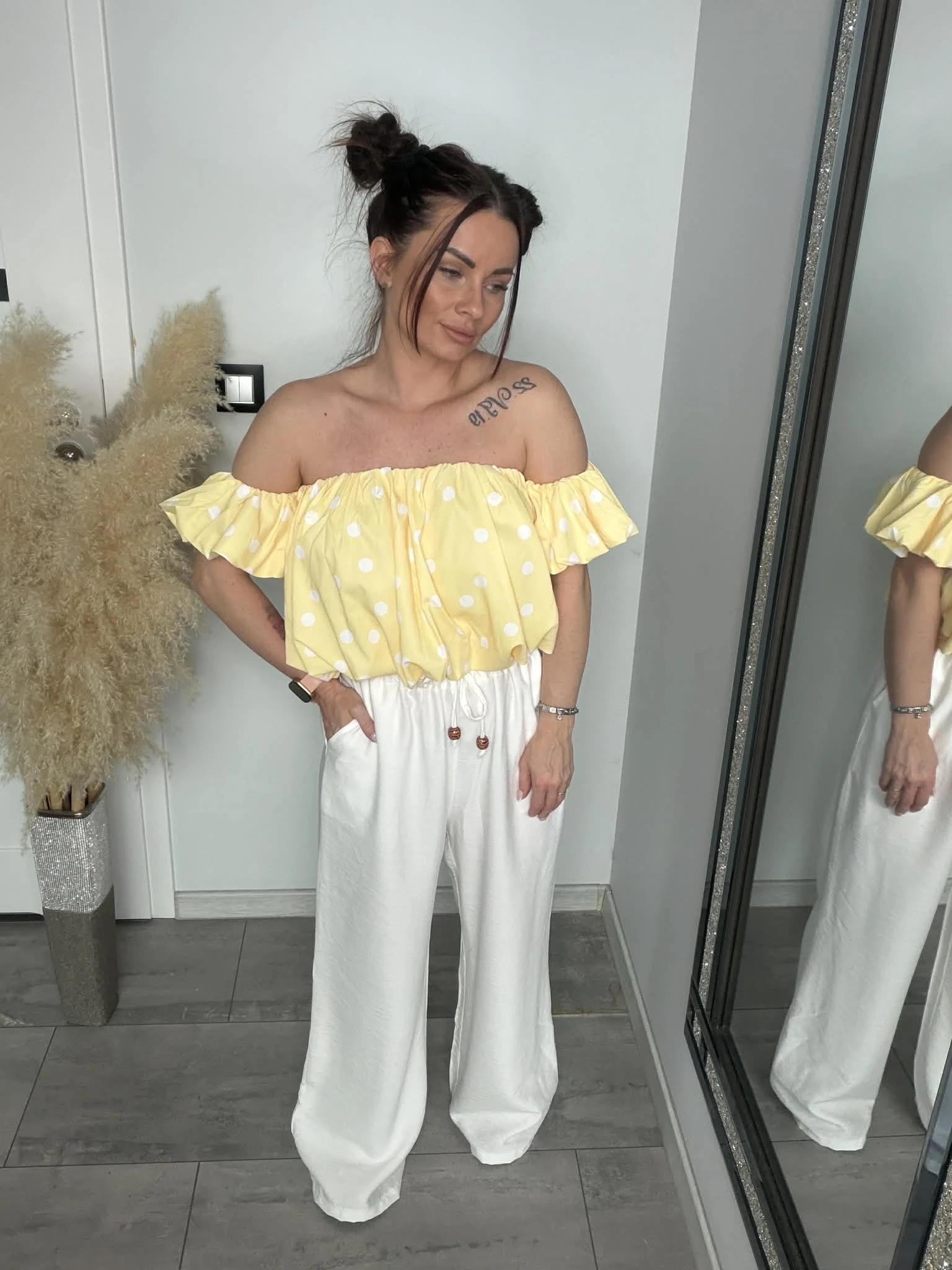 Bluzka hiszpanka MARLEN w groszki żółta
