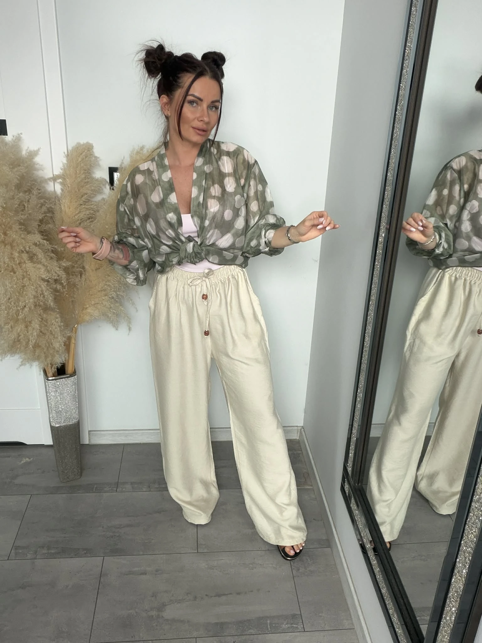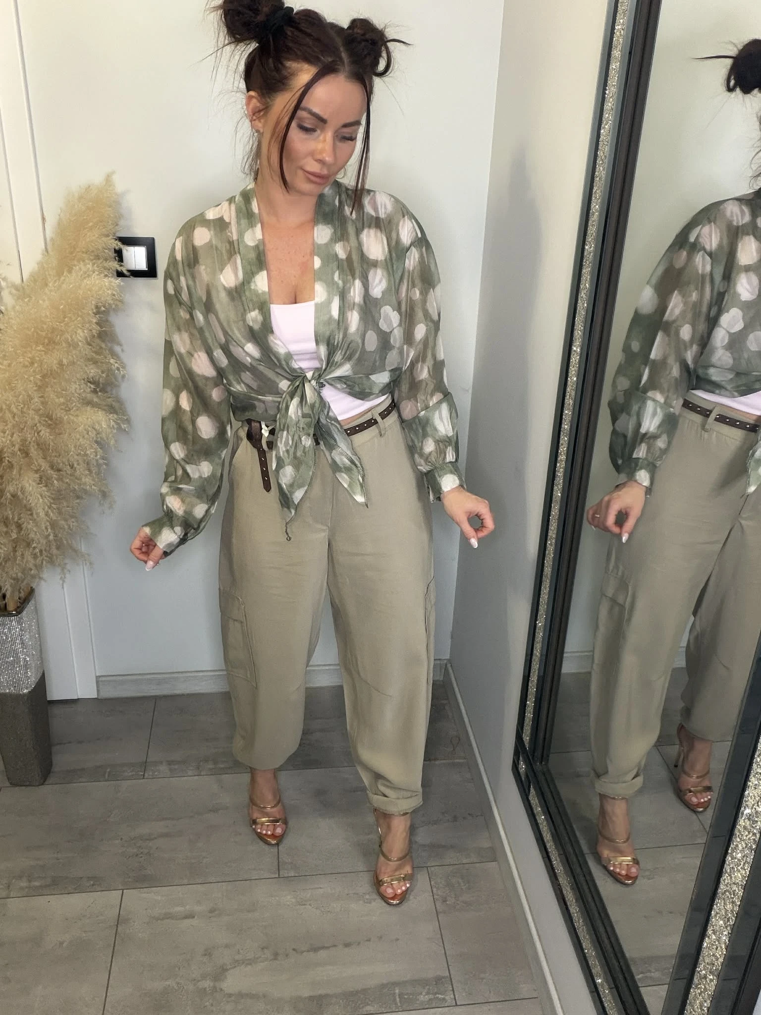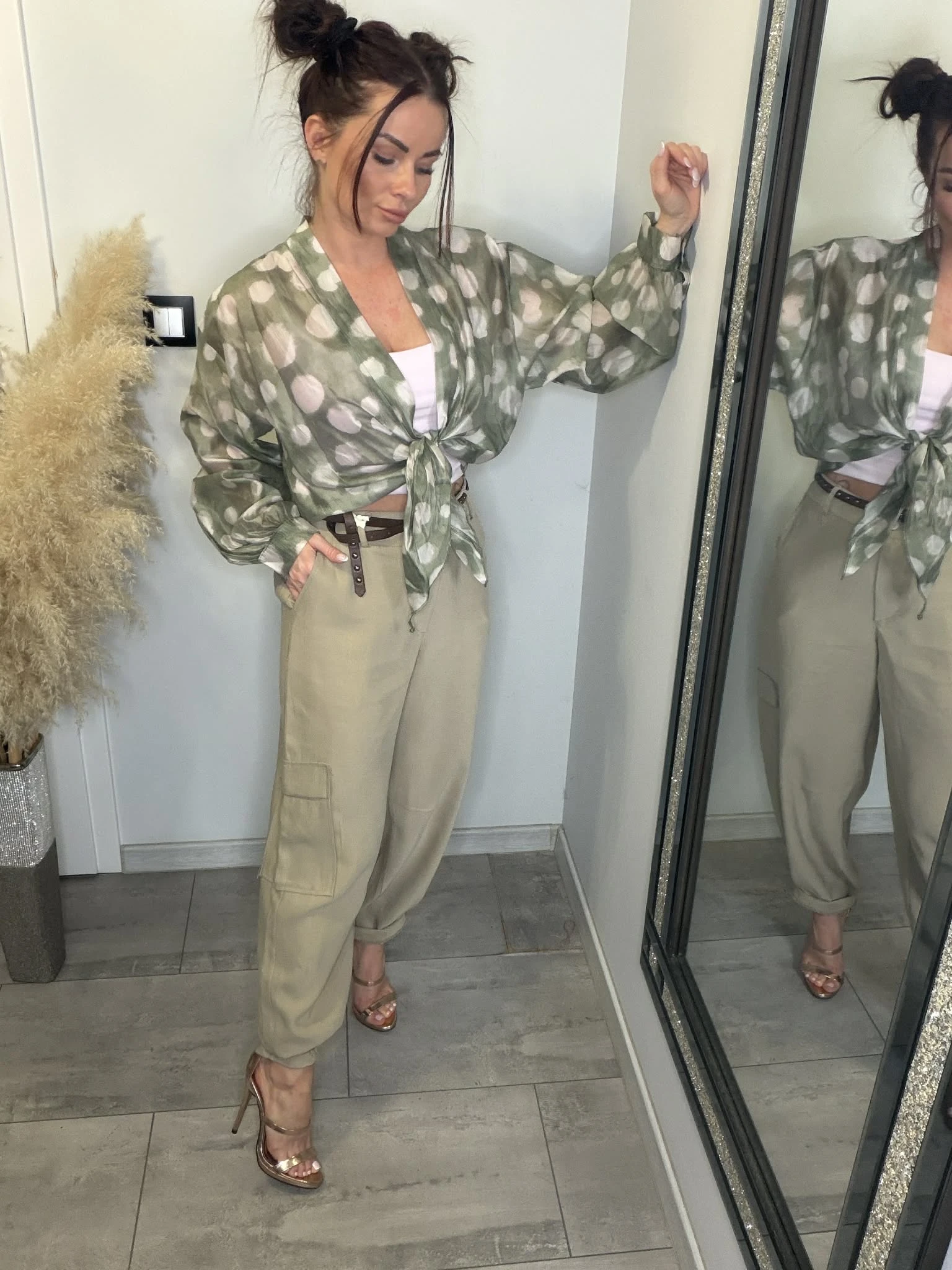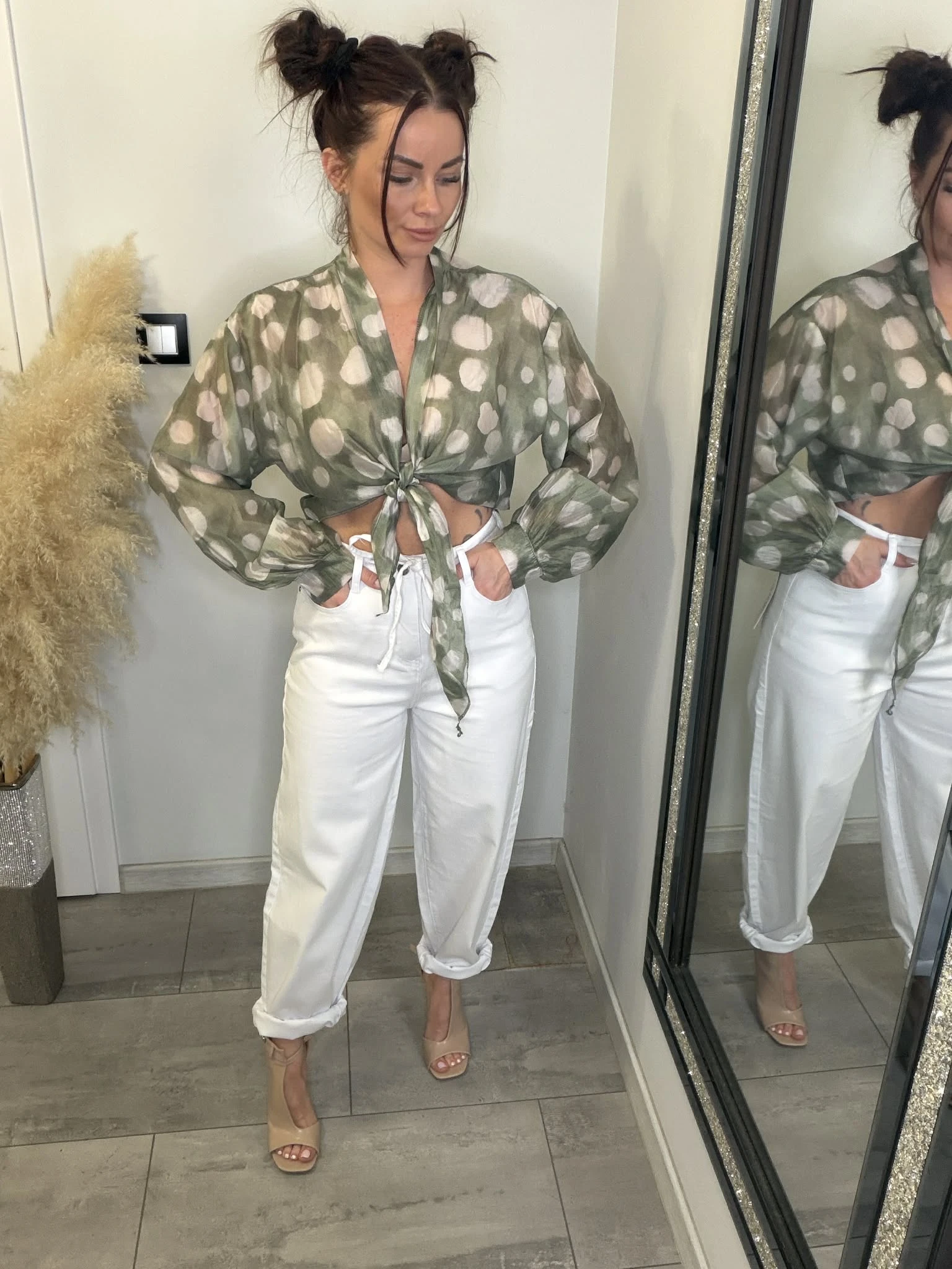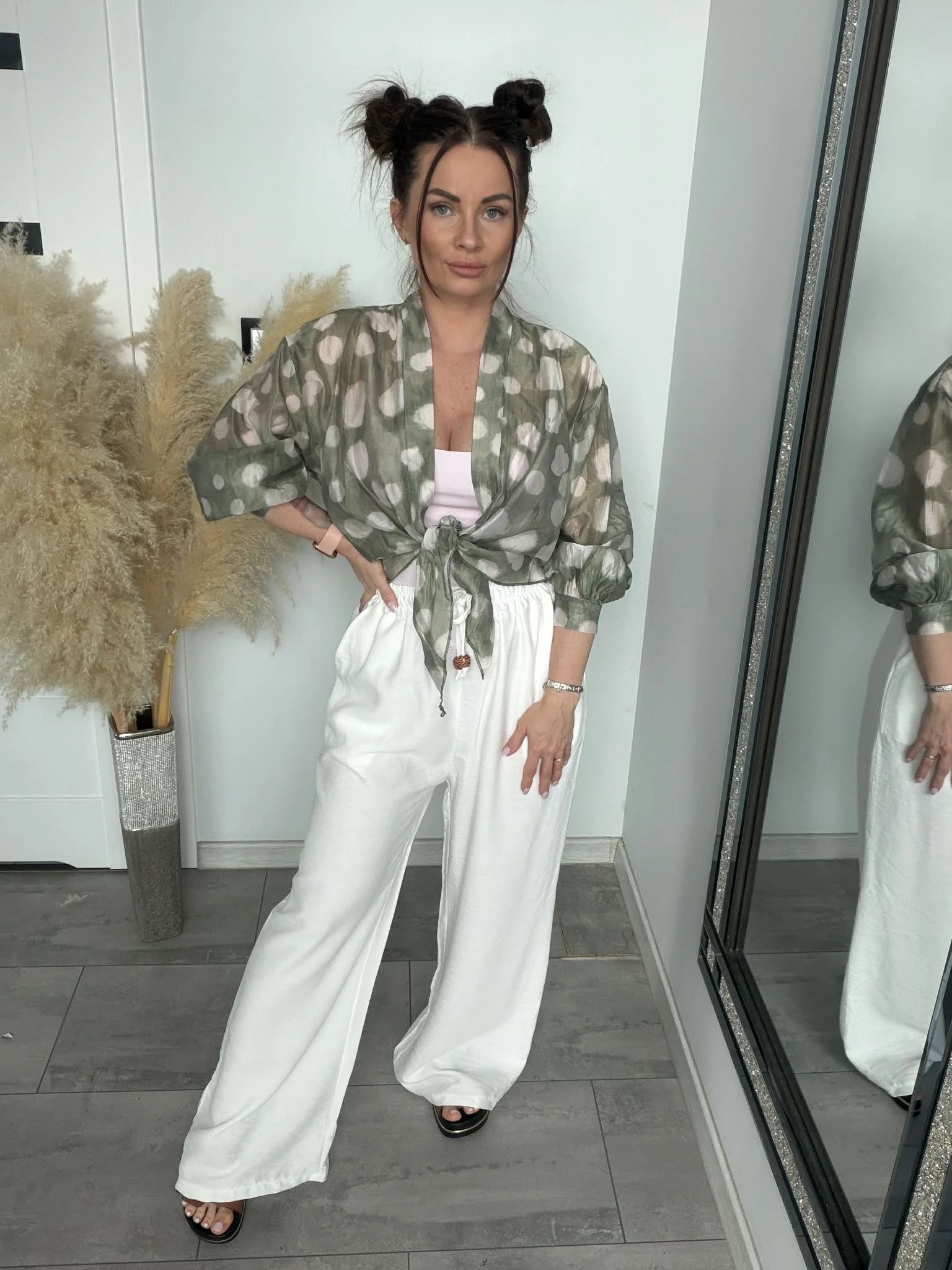 Koszula SOFIA to absolutny must-have na lato. Wykonana z delikatnego, przewiewnego materiału typu „mgiełka”, pięknie układa się na sylwetce i daje efekt lekkości oraz subtelnej kobiecości. Luźny krój i możliwość wiązania z przodu pozwalają stylizować ją na wiele sposobów – bardziej casualowo lub z nutą elegancji. Idealna do narzucenia na top, kostium kąpielowy czy dopasowaną bazę. Świetnie sprawdzi się zarówno na co dzień, jak i na wakacyjne wyjazdy.