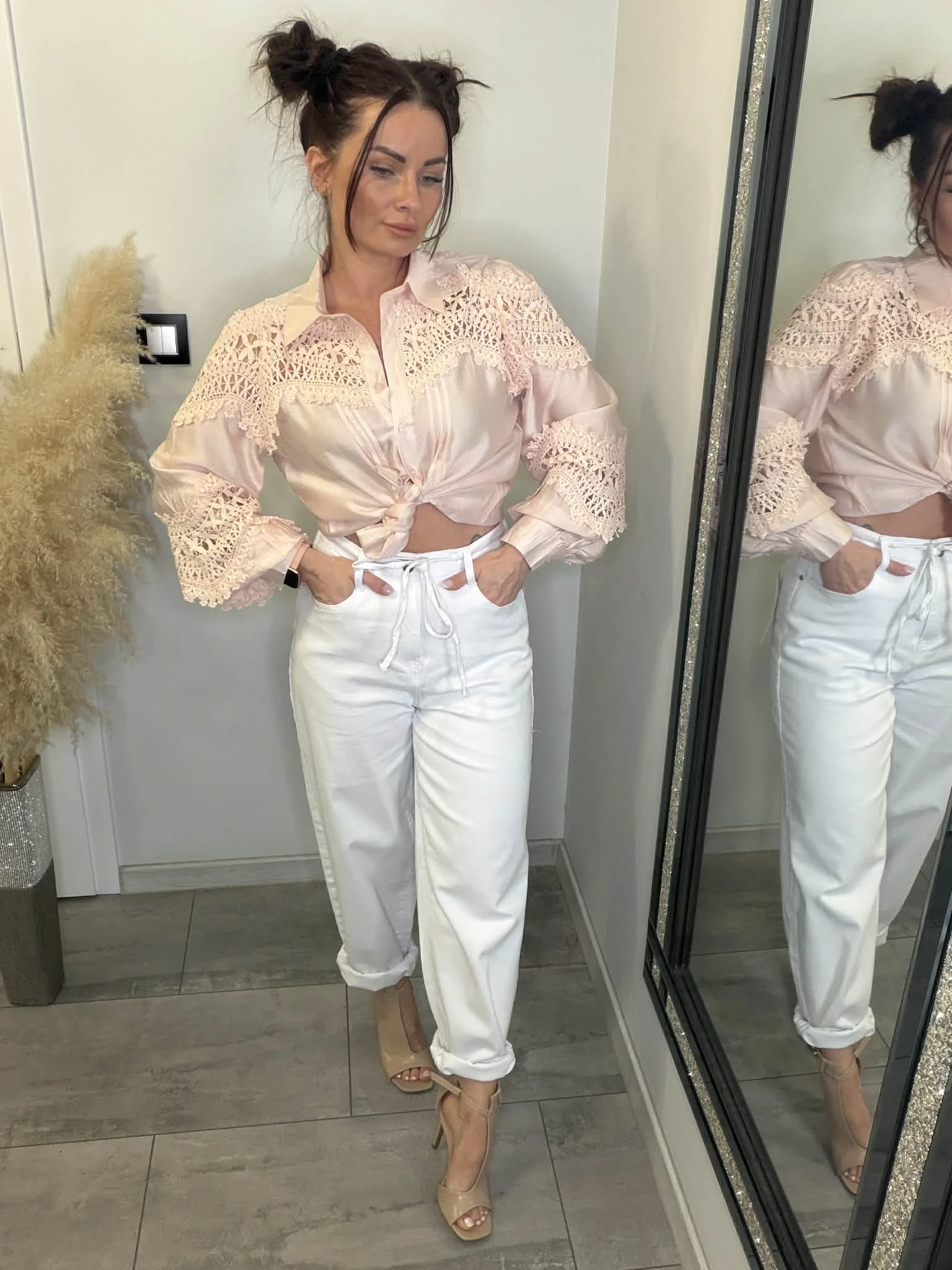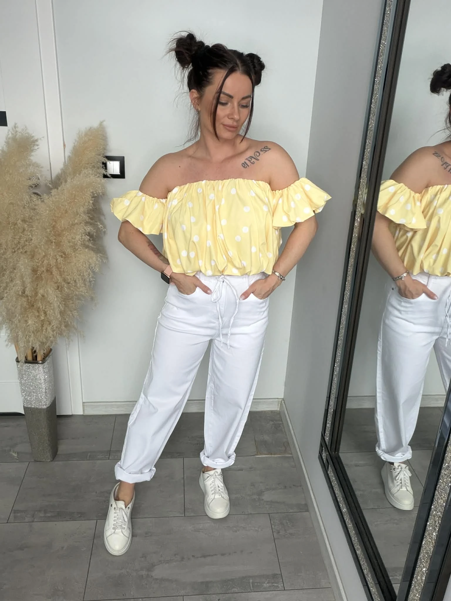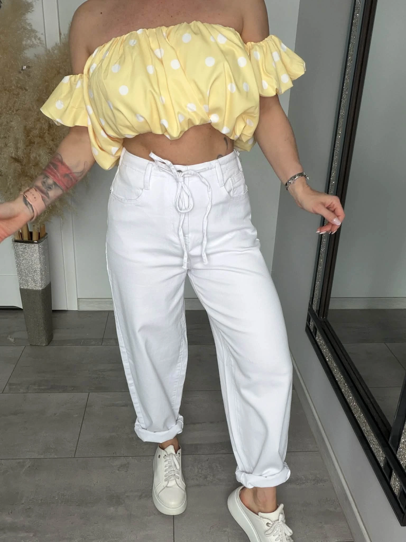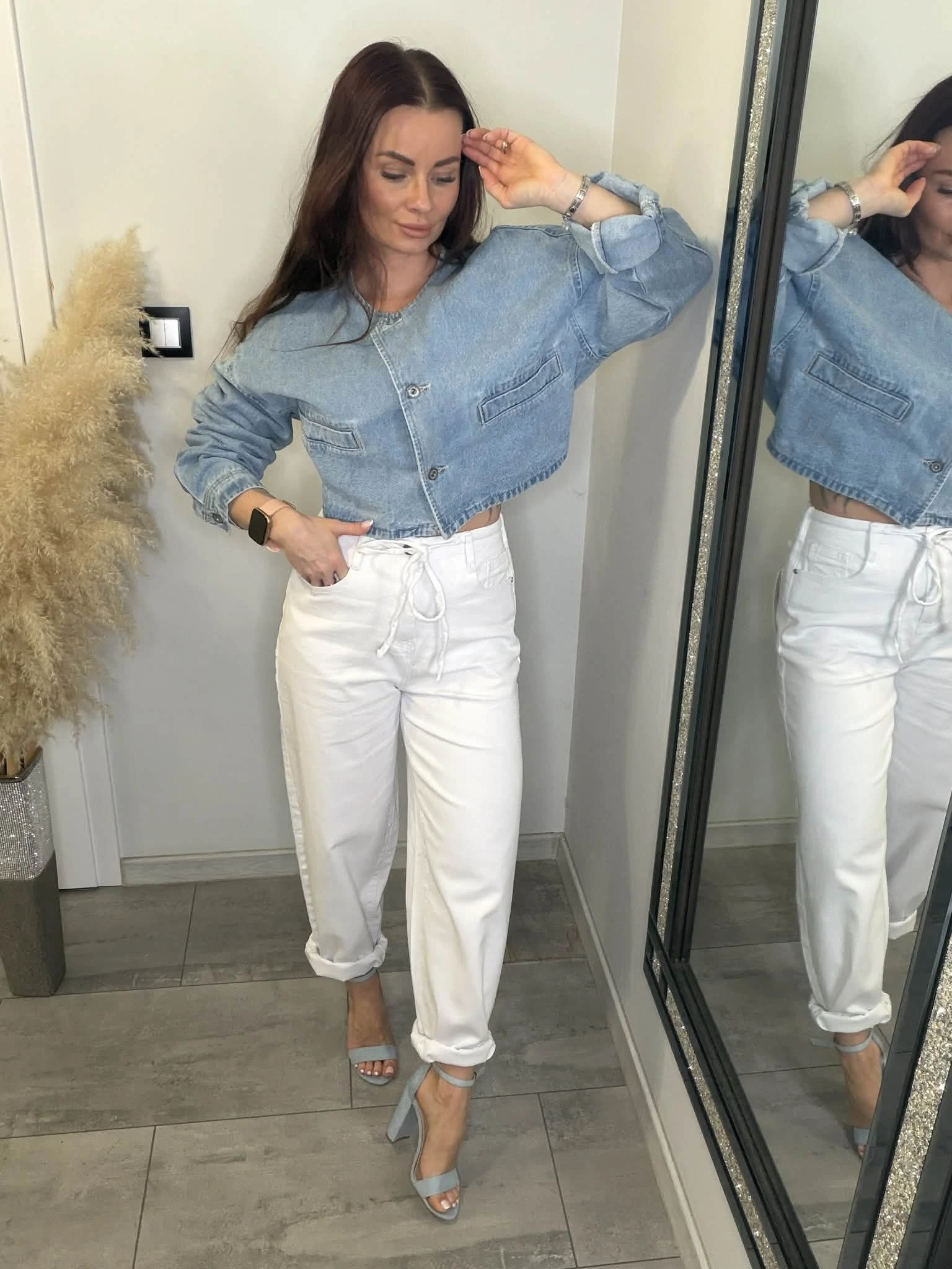 Spodnie jeansowe balloon SOFT FIT elastyczne z wiązaniem 93% bawełna