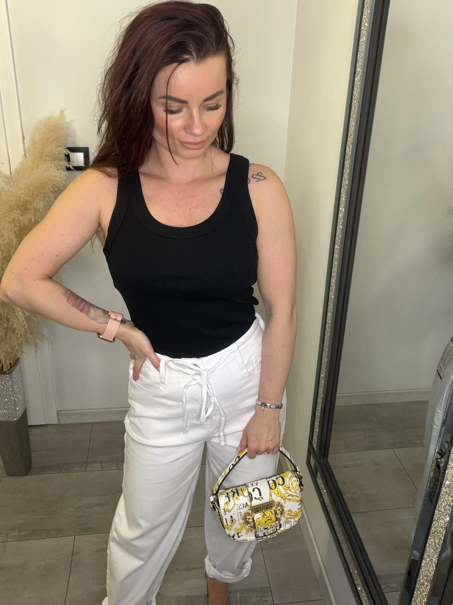 Top KATE to absolutna baza każdej garderoby – klasyczny, dopasowany model, który sprawdzi się w niezliczonej ilości stylizacji. Prążkowany materiał pięknie podkreśla sylwetkę i dopasowuje się do ciała, zapewniając maksymalny komfort noszenia przez cały dzień. Dzięki połączeniu bawełny i wiskozy top jest miękki, oddychający i bardzo przyjemny dla skóry. Elastyczność sprawia, że idealnie układa się na ciele i nie krępuje ruchów. Świetnie wygląda zarówno solo w letnich stylizacjach, jak i w chłodniejsze dni jako baza pod marynarkę, koszulę czy bluzę. Must-have na cały rok.